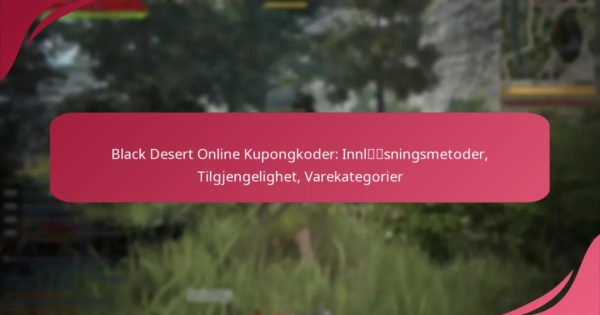 Black Desert Online kupongkoder er kampanjekoder som spillere kan innløse for ulike fordeler i spillet. Disse kodene gir vanligvis gjenstander, rabatter eller forbedringer som forbedrer spillopplevelsen.