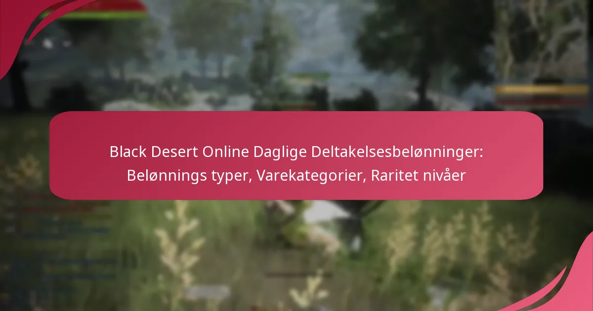 I Black Desert Online tilbyr daglige tilstedeværelsesbelønninger spillerne en rekke verdifulle gjenstander som kan forbedre spillopplevelsen betydelig. Ved å logge inn jevnlig kan spillerne samle belønninger som utstyr, forbruksvarer, håndverksmaterialer og valuta, hver kategorisert etter sjeldenhetsnivåer. Å forstå disse kategoriene og deres tilknyttede sjeldenhet kan hjelpe spillerne med å maksimere fordelene ved sin daglige tilstedeværelse.